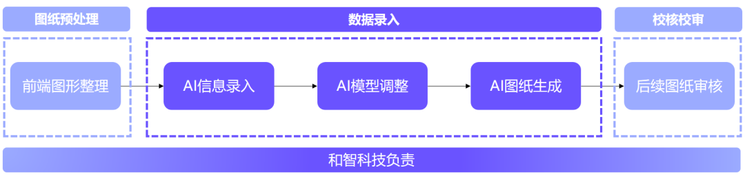 相较于传统设计而言,AI设计在流程上会有所不同,目前设计工作流程分为图纸预处理、数据录入和校核校审三个阶段,主要业务集中在精装套图、装配式设计及门窗设计。