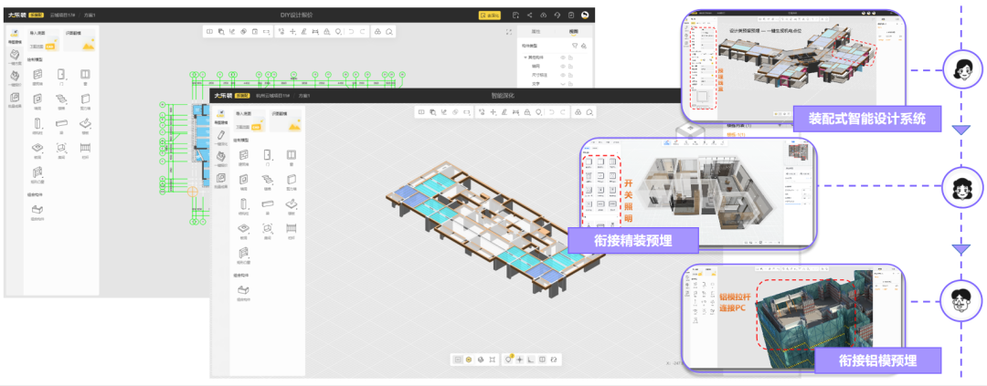 保利发展控股AIGC设计系统内置“一城一策”、标准专家做法、标准构件库等,AI一键应用,且数据智联供应链系统;数字化管控强,质量可控,PC成本降低了10%以上,设计效率提高了5倍以上。
